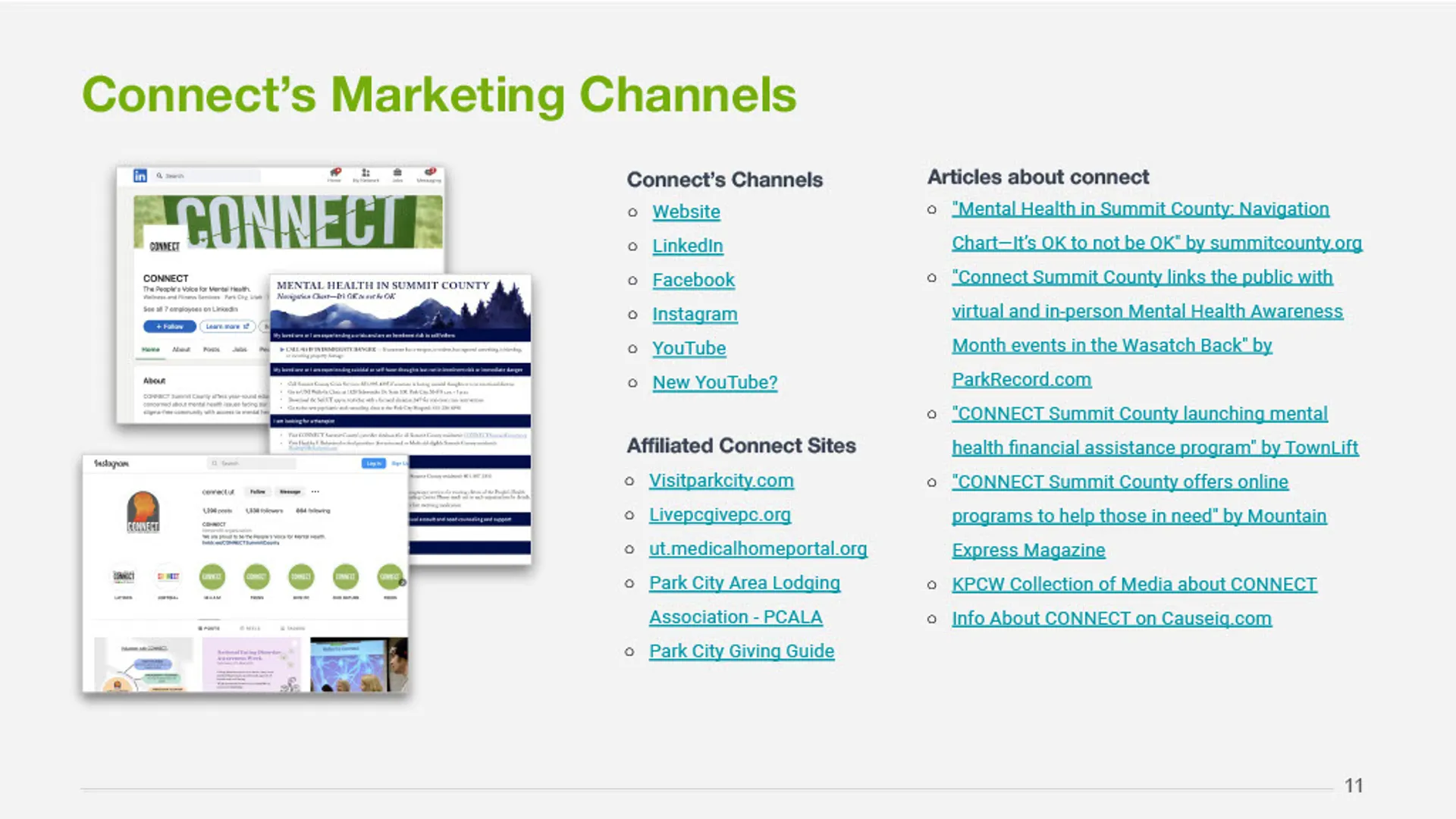 CONNECT Summit County is a nonprofit mental health organization focused on creating a well-informed, stigma-free community by connecting individuals and families to local mental health resources. With limited resources and a need for clearer community visibility, CONNECT partnered with our team to define a focused marketing direction that strengthened the brand, clarified its mission, and increased awareness and engagement with its services.
