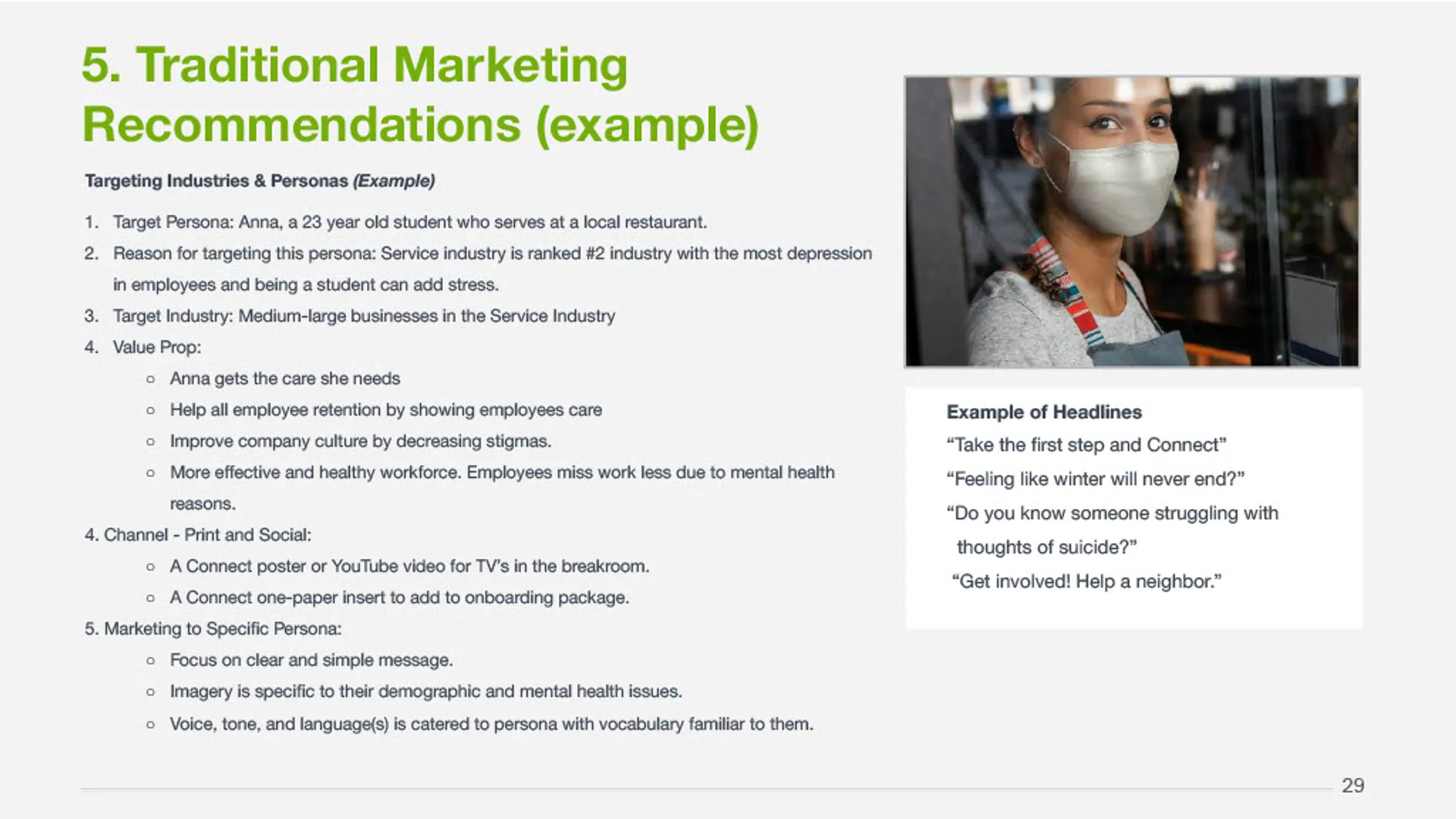 Marketing Strategy Lead, responsible for market research, audience analysis, campaign development, and implementation planning for community mental health organization.