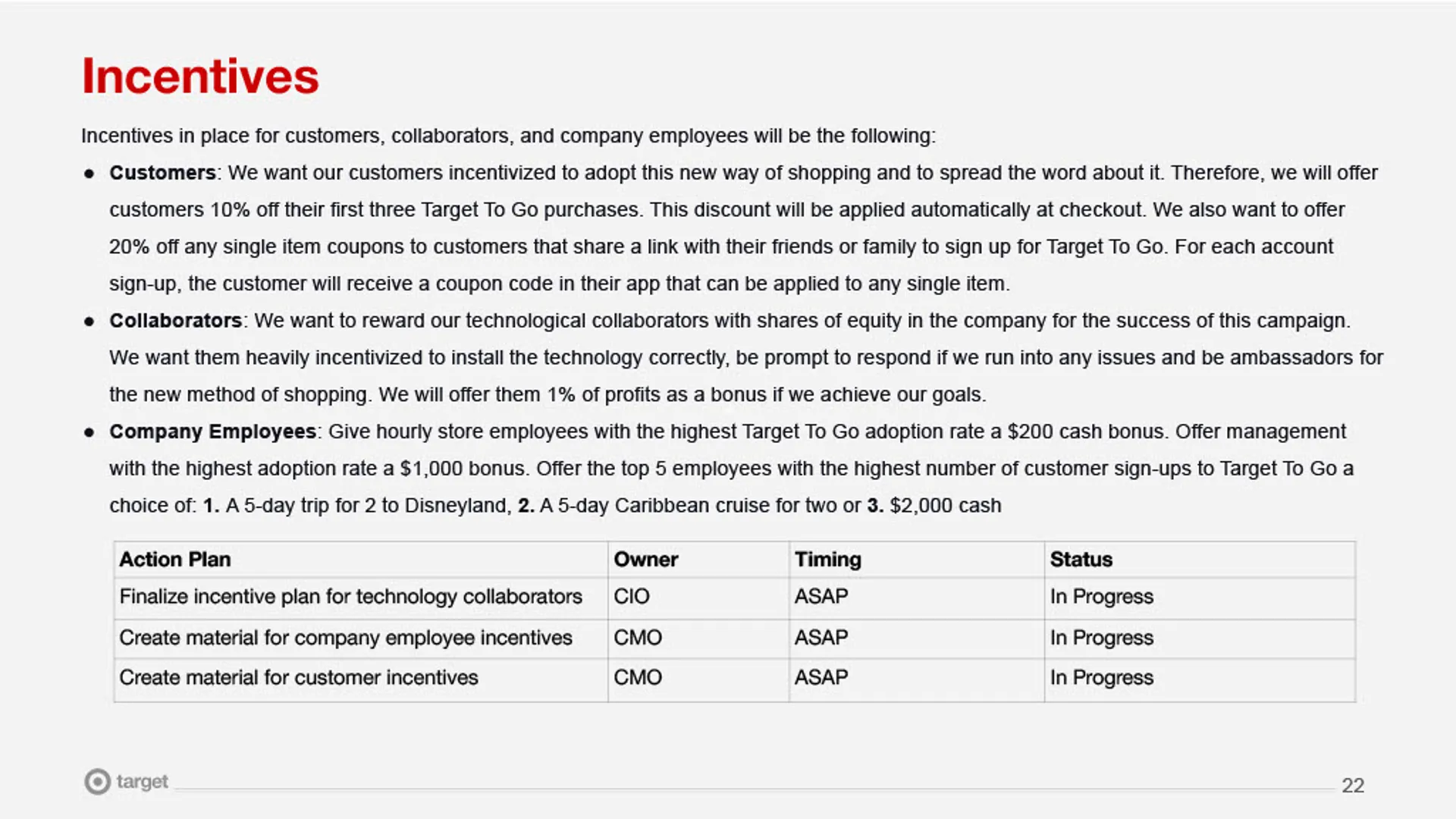 • Incentives for customers, partners, and employees to drive adoption.