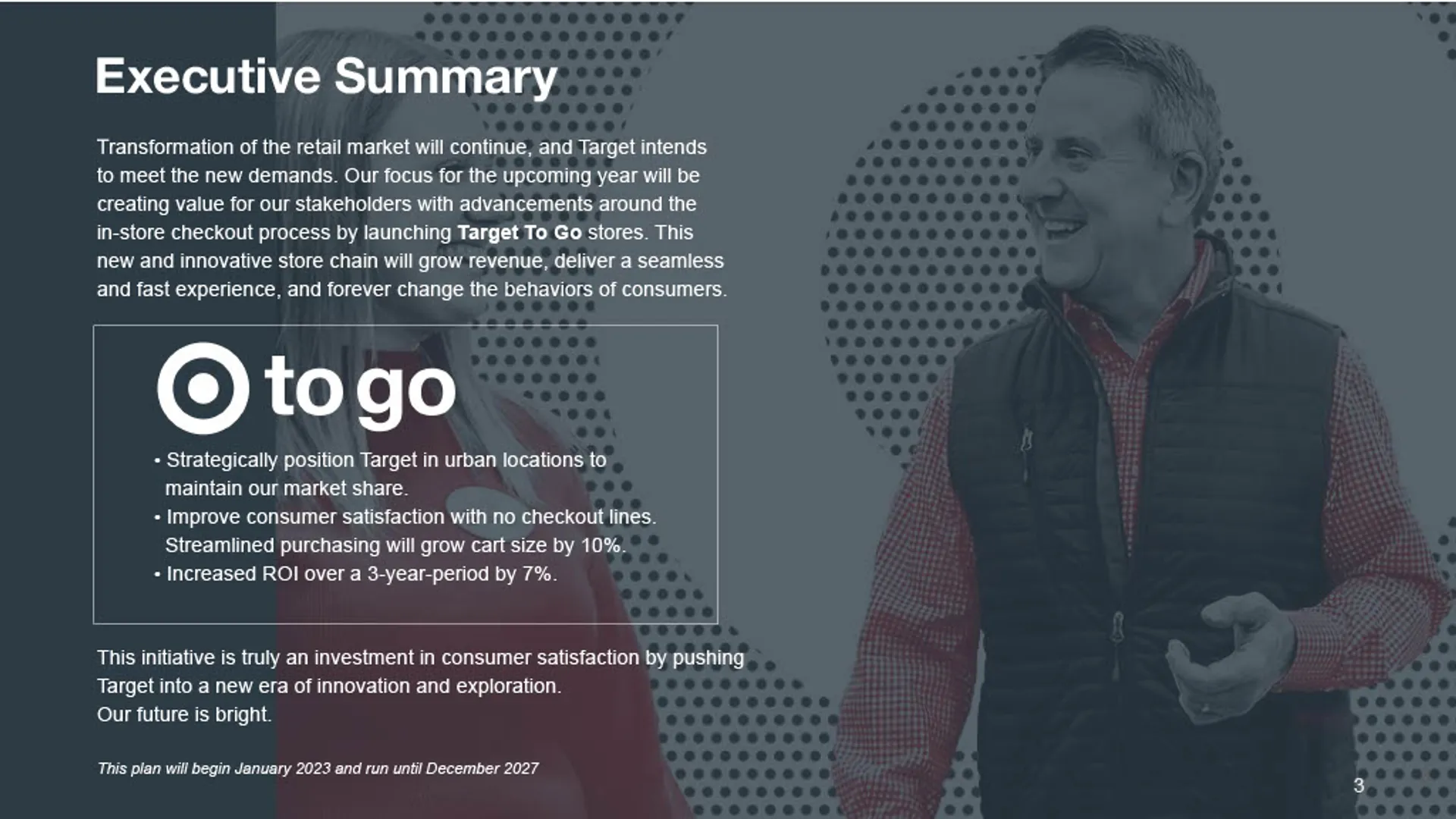 • Increase ROI by 7% over three years.
